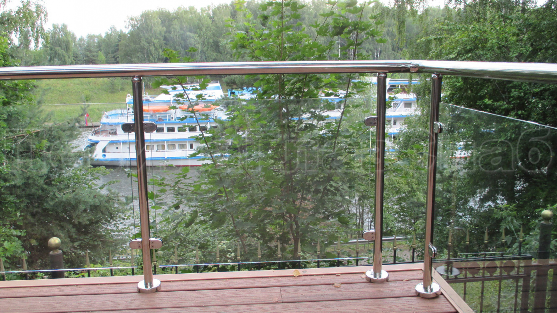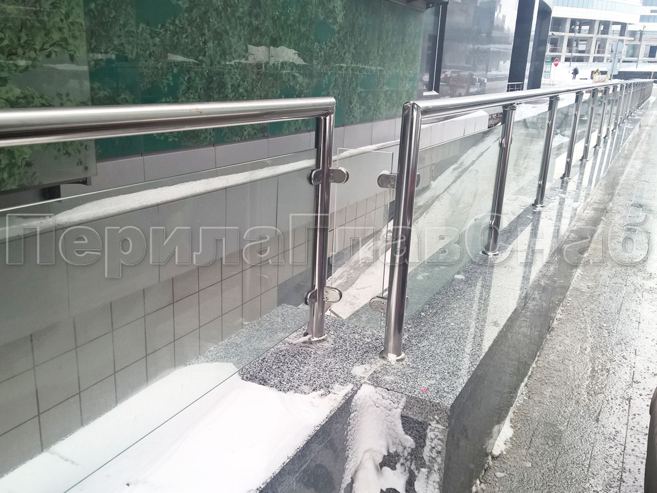 Ограждение для лестницы из нержавейки с зажимными стеклодержателями для крыльца в Челябинске. Готовые проекты ПерилаГлавСнаб