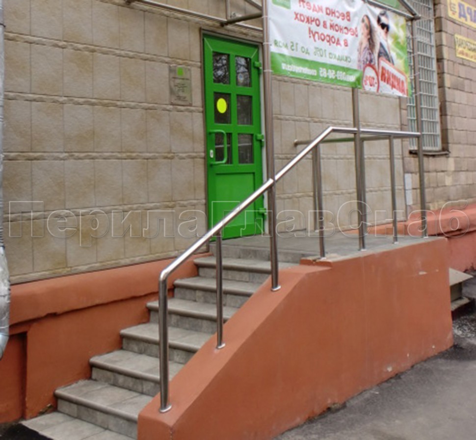Нержавеющие ограждения для школ и детских садов с вертикальным заполнением “Частокол” - вариант №1 для крыльца