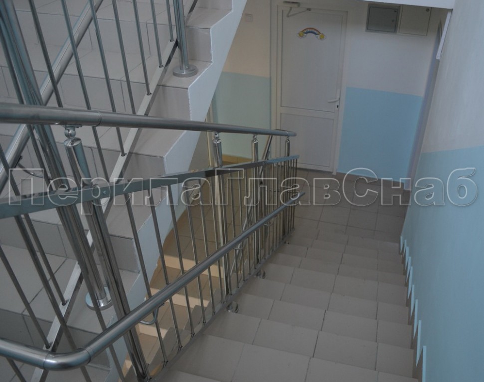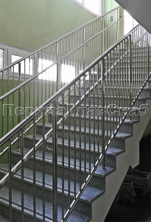 Нержавеющие ограждения для школ и детских садов с вертикальным заполнением “Частокол” - вариант №1 для крыльца