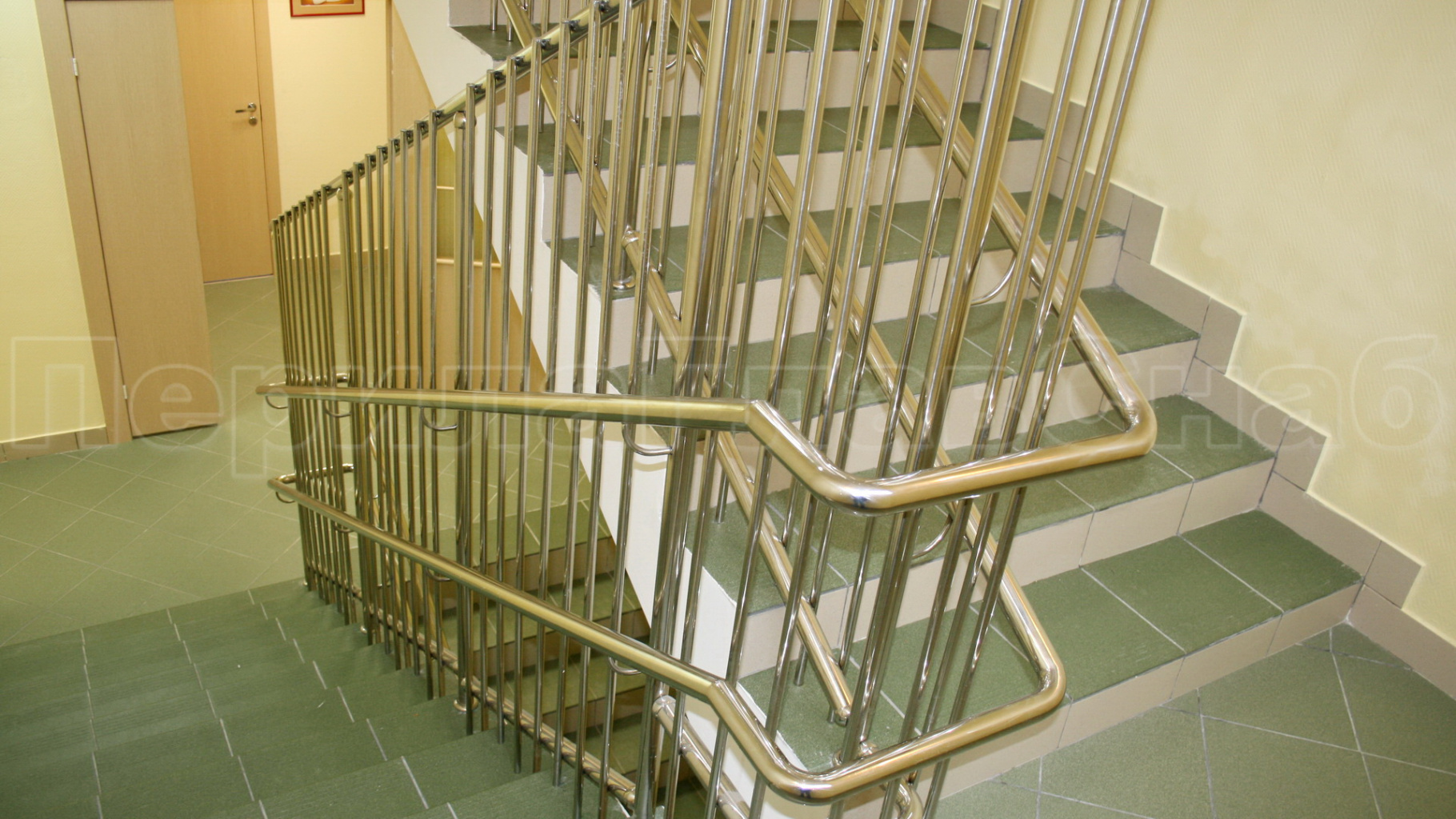 Лестничное ограждение с тремя ригелями и поручнем из латуни