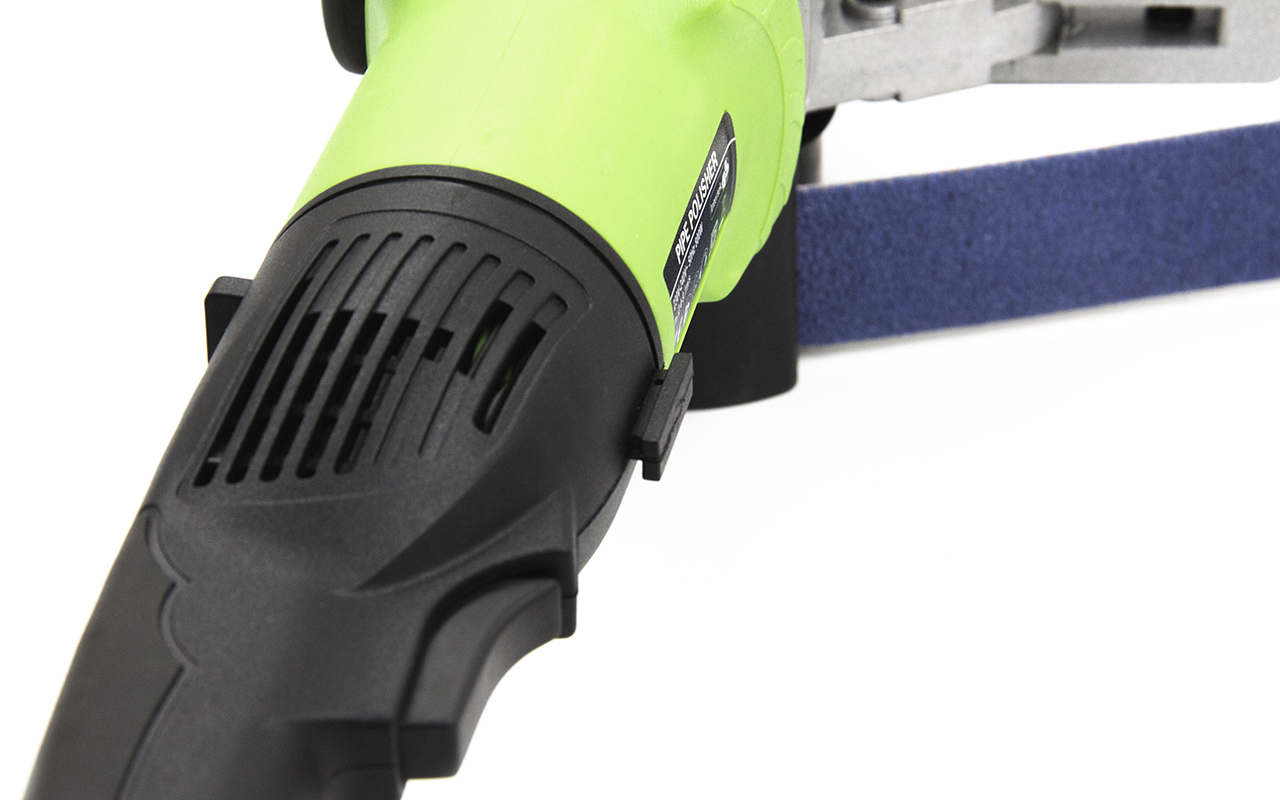 Шлифовальную машину комфортно использовать во время длительных работ, поскольку ползунковый переключатель не требуется постоянно удерживать в процессе шлифовки. А плавная регулировка оборотов позволяет выбрать необходимую скорость движения шлифленты.