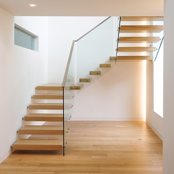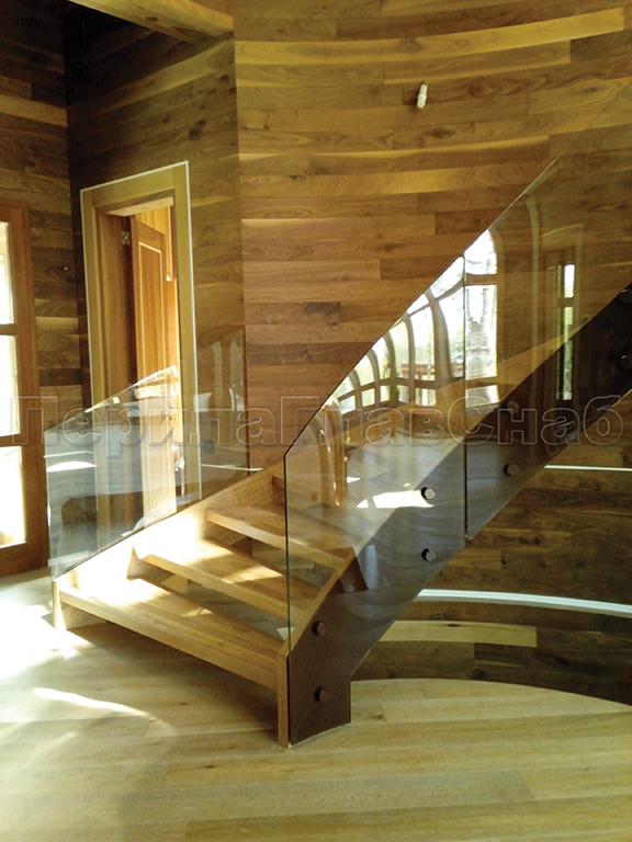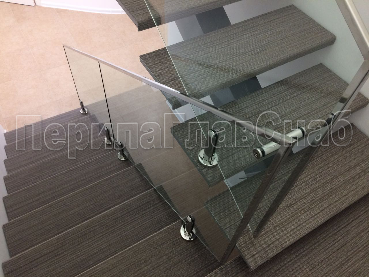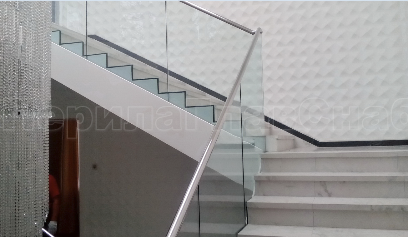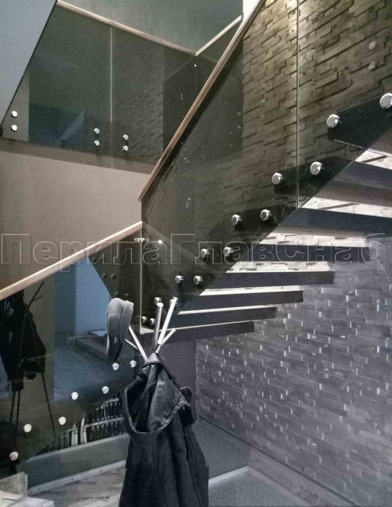 Стеклянные ограждения маршевых лестниц в интерьере - фото