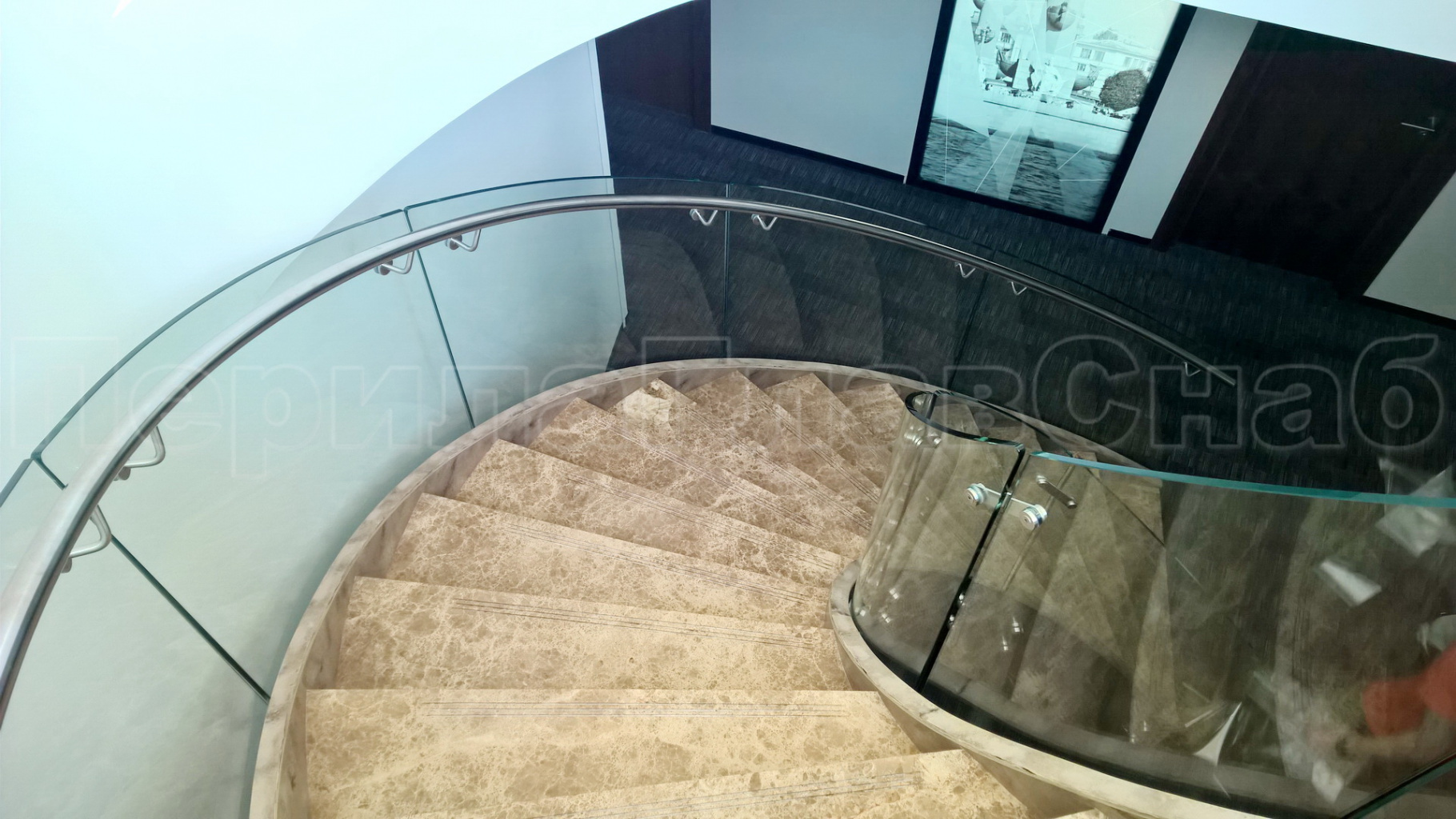 Мы готовы изготовить классическое ограждение лестниц из стекла и нержавеющей стали маршевого типа. Данная конструкция может быть монолитной (например, бетонной), или выполненной на косоурах или больцах. Лестничное ограждение маршевого типа из нержавеющей стали и стекла строится на основе маршей с разным углом наклона. Для облегчения подъема по данной конструкции создаются специальные поворотные плоские площадки, которые могут соединяться забежными ступенями.