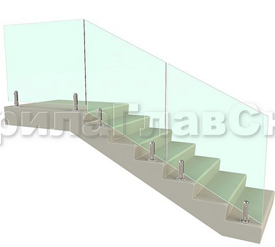 Ограждения лестницы без поручня с зажимными стеклодержателями и стойками