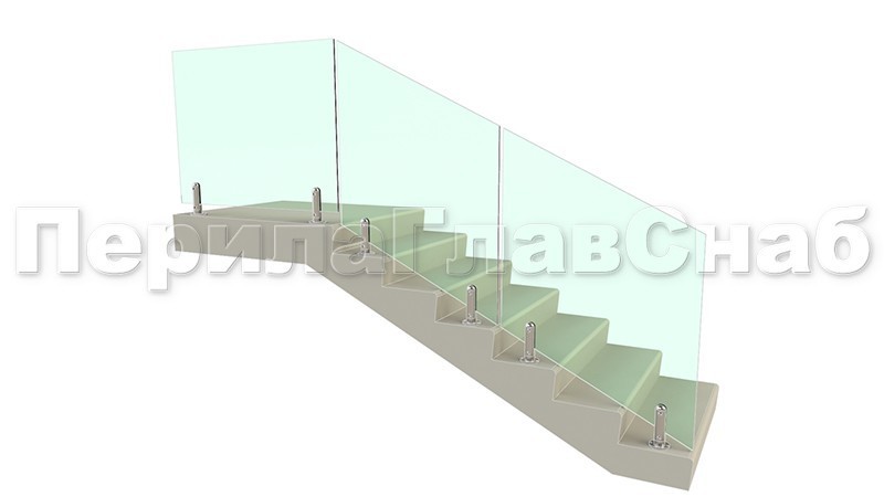 Ограждения лестницы без поручня с зажимными стеклодержателями и стойками