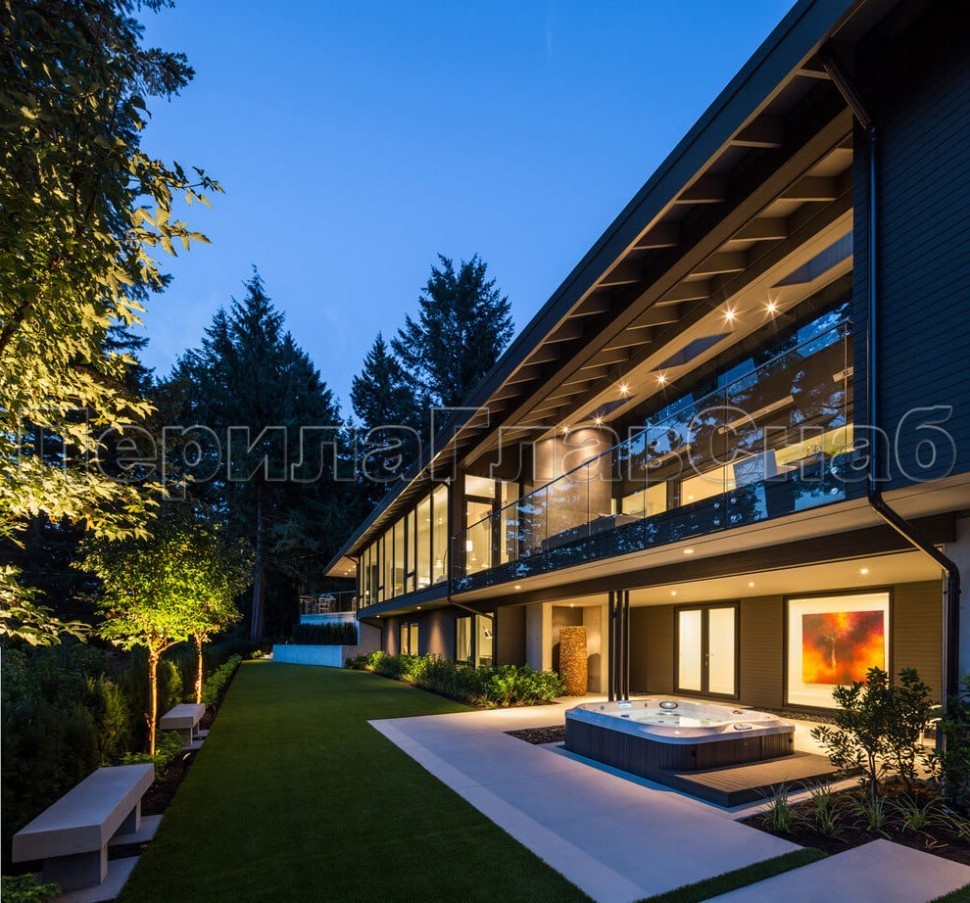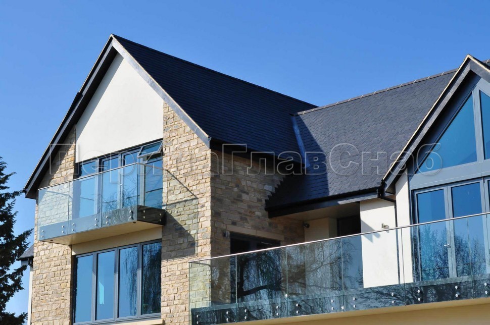 Ограждение кровли на несущем стекле и алюминиевом профиле