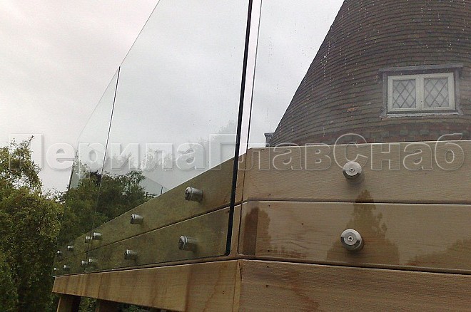 Ограждение с деревянным поручнем на точечном креплении