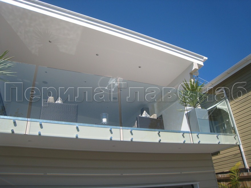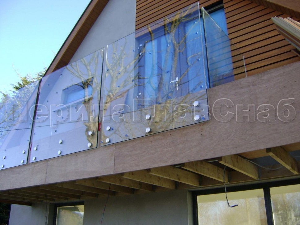 Несущее стекло крепится в торец балконного основания специальными точечными креплениями.