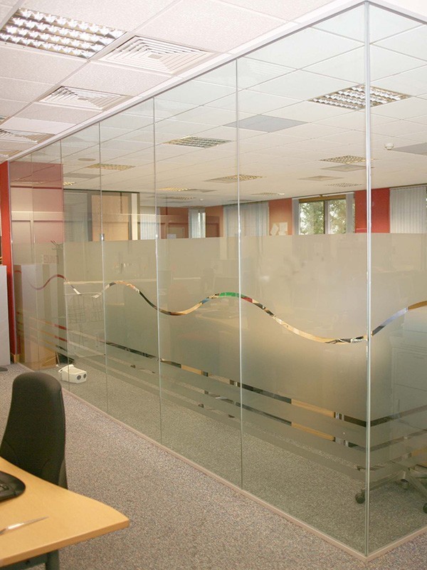 Стеклянные перегородки в офисе с закаткой пленки